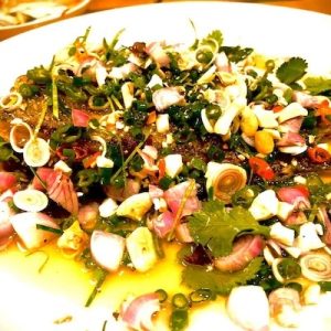 彼女の故郷であるタイ東北部、イサーン地方の国民的料理「ラープ」は、肉や魚をたっぷりのハーブと香辛料で和えたサラダ。