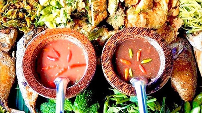 淡水魚にもち米とニンニクや塩を詰め、放置して乳酸発酵させて作る。