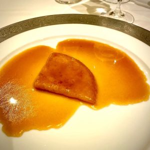 今回は美しく剥かれたオレンジの皮にグラン・マニエを垂らしてソースに加える、ゴージャスなバージョンでした。