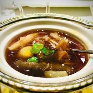 久しぶりの本場の中華料理の中でも、特に驚いたのが「佛跳牆」です。あまりの美味しそうな香りに、修行僧ですらお寺の塀を飛び越えて食べに来たという伝説があるスープです。