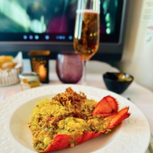 ちなみに、今回食べたカタール航空のオマール海老料理は、ローランペリエ アレクサンドラロゼ2007と最高の組み合わせでした。