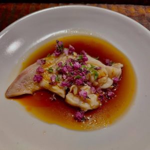 日本刀と同じ玉鋼で作られた鍋で焼き上げられる料理は、立ち上る香り、響く音、無駄のない手さばき、そのすべてが美しかったです。